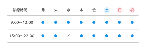 朝から夜までお仕事をされている方のために、診療時間を見直しました。